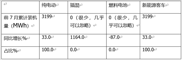 ---纯电动客车有装机量447MWh,同比增长4%、环比下降37%,说明今年7月纯电动客车装机量同比小增、环比大降!