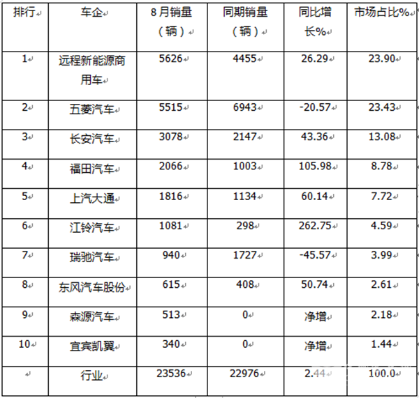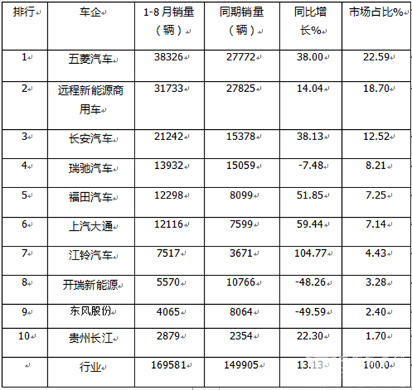 8月新能源轻客:同比小增、环比小降呈企稳态势!远程\五菱\长安居前三
