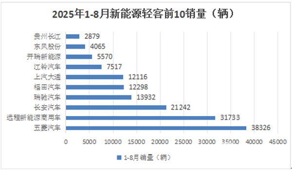上图表显示,在2025年1-8月新能源轻客累计销量中: