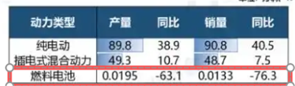 表1,根据中汽协数据,2025年前8月燃料电池汽车产量同比统计: