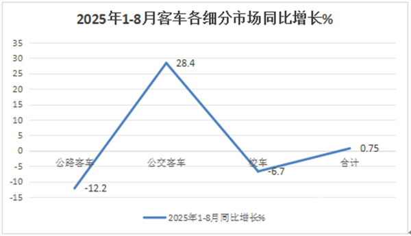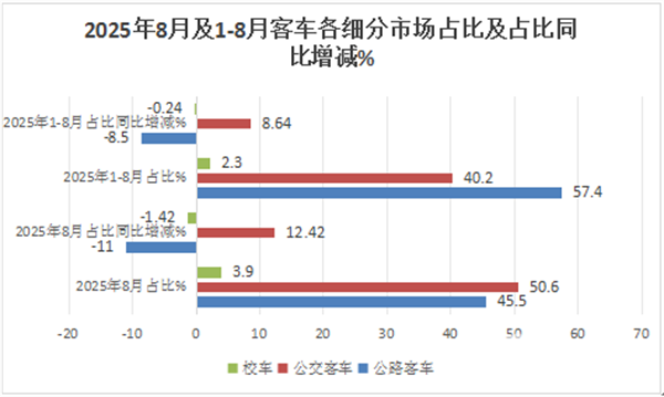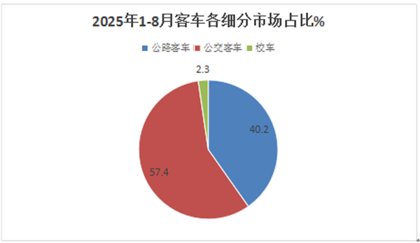 上图表可见,在2025年1-8月5米以上公路、公交、校车三大细分市场中: