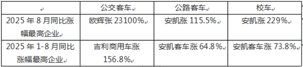 截图1,2025年8月客车三大细分市场同比增长最猛的车企(数据来源:慧眼看车)