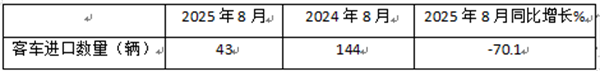 表2,根据中国汽车流通协会提供的数据,2025年8月我国客车进口数量同比下降70.1%