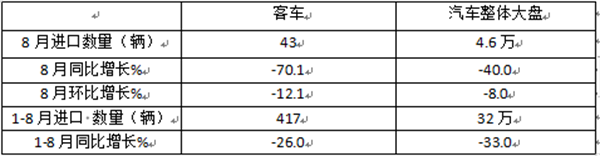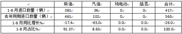 前8月我国客车进口:同比降26% 轻客领跑领涨 柴油占比超9成