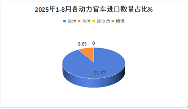 上图表显示,2025年1-8月各类客车进口市场中: