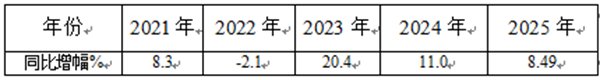 表2 近5年前三季度90万-150万客车同比增幅%