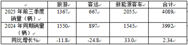 正是在上述几个因素的综合作用下,导致2025年前三季度高端客车市场同比仅呈现小幅度增长。
