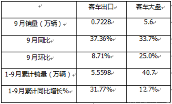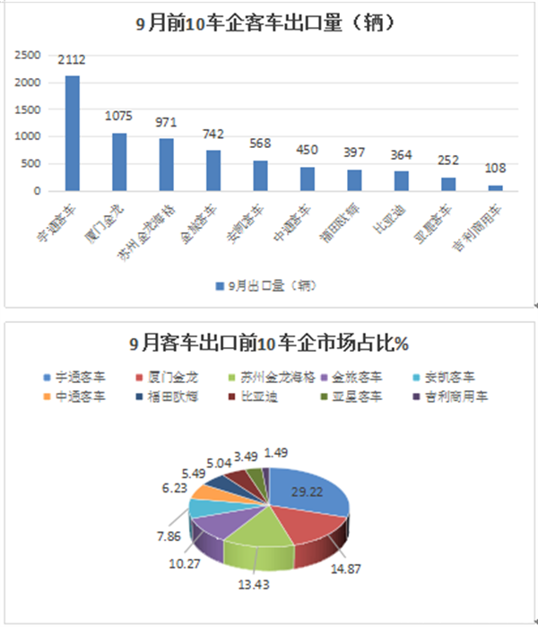 9月客车出口:销7228辆 同环比双增 宇通强势夺冠 金龙\海格分列二三