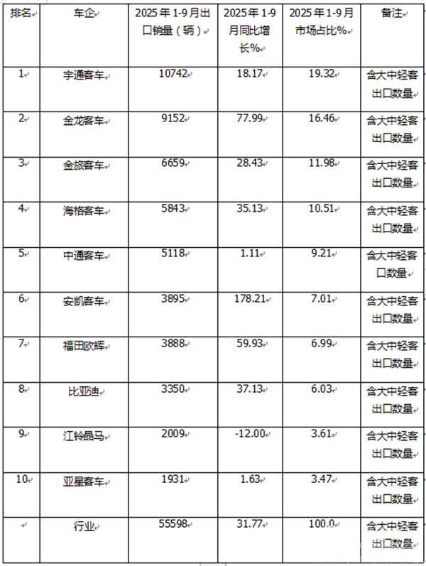 ---2025年1-9月我国客车出口同比增长31.77%,跑赢2025年1-9月客车大盘12.7%的同比增速;