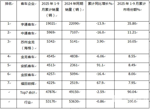 - 2025年前三季度公路客车市场主要特点总结