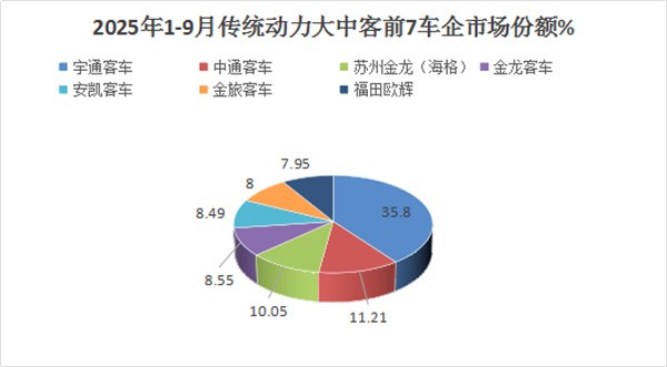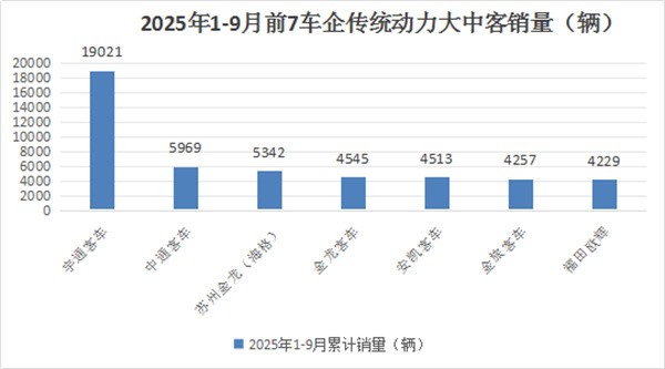 上图表显示,在2025年前三季度传统动力大中客销量中: