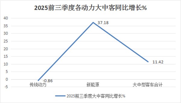 总之,在2025年前三季度大中型客车市场中,大中型新能源客车已成为推动大中型客车整体市场增长的最大动力,因此成为2025年前三季度我国客车行业的一大看点。