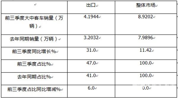 四是国内大中型客车市场由于旅游公路客运市场的相对低迷,对大中型客车整体市场的高效率降低,因此给海外出口是同比增速远跑赢大中客整体市场增速提供了机会。