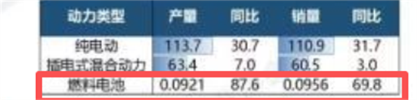 上表显示,2025年10月燃料电池汽车销量同比增长69.8%,跑赢2025年10月6米以上大中型新能源客车28.84%的同比增速近41个百分点; 主要原因是去年同期燃料电池汽车销量基数太低导致的。