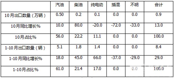 总之,无论是今年10月还是1-10月,汽油客车出口均为最多、柴油占据均为第二、纯电动占比均为第三;从同比增速看,单月柴油领涨、累计纯电动领涨。