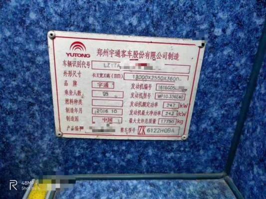 | 客车品牌 | 宇通客车 | 上牌时间 | 2016-12-30 |