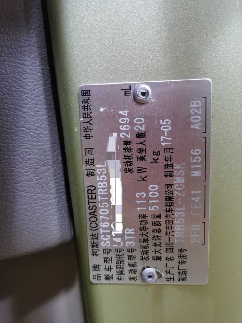 2017年7月上牌丰田考斯特20座,外摆门,封闭窗,汽油3TR发动机,有办公桌,秘书台,有杯架,表显10万公里,轮胎都有八成左右
