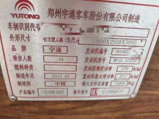 宇通17年6126,国五,公路客运,捡便宜的来咯