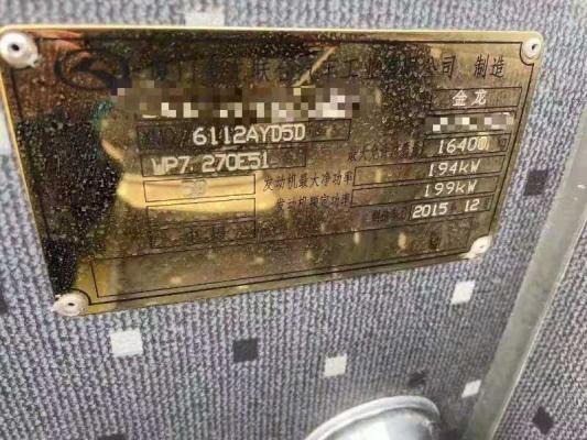 国五非营运50座大金龙6112型气囊客车2016年上牌,缓速器,潍柴270-51国五机头,行李架, 通舱,全车原版原漆 公里数5-10万,轮胎八九成新,又有逃生窗,先挑先得,定金留车