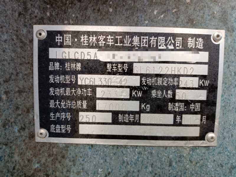 | 客车品牌 | 桂林大宇客车 | 上牌时间 | 2016-12-30 |