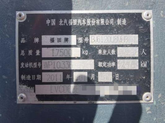 2011年上牌福田6120,53座,有中门,潍柴P10-336发动机,车况保养很好,没有事故,正常使用中,租赁性质。