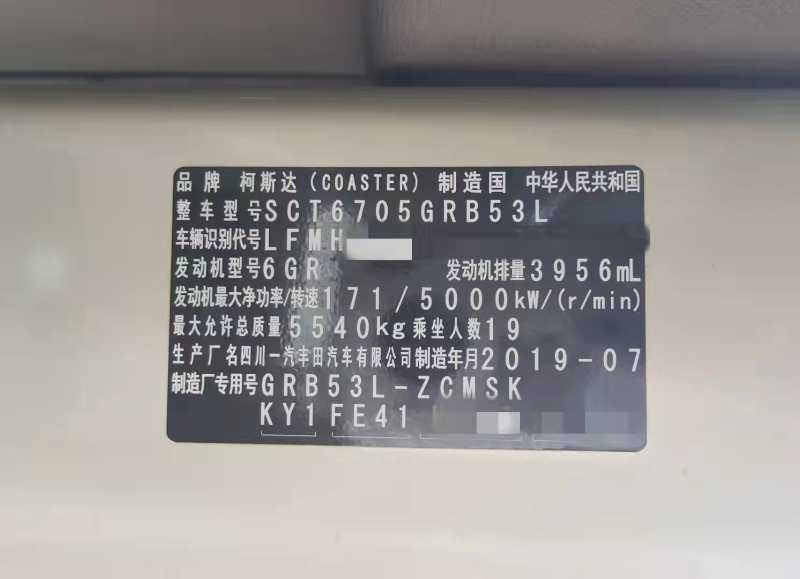 | 客车品牌 | 柯斯达客车 | 上牌时间 | 2019-09-19 |