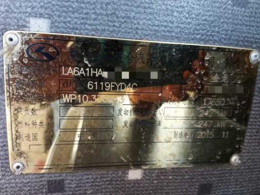 2015年12月上牌大金龙6119气囊车,55座,潍柴P10-336发动机, 中门,旅游客运, 营运档案,可提供广东省营运转籍通知单,内饰外观保养非常好,干净整洁,正常使用中,定金留车