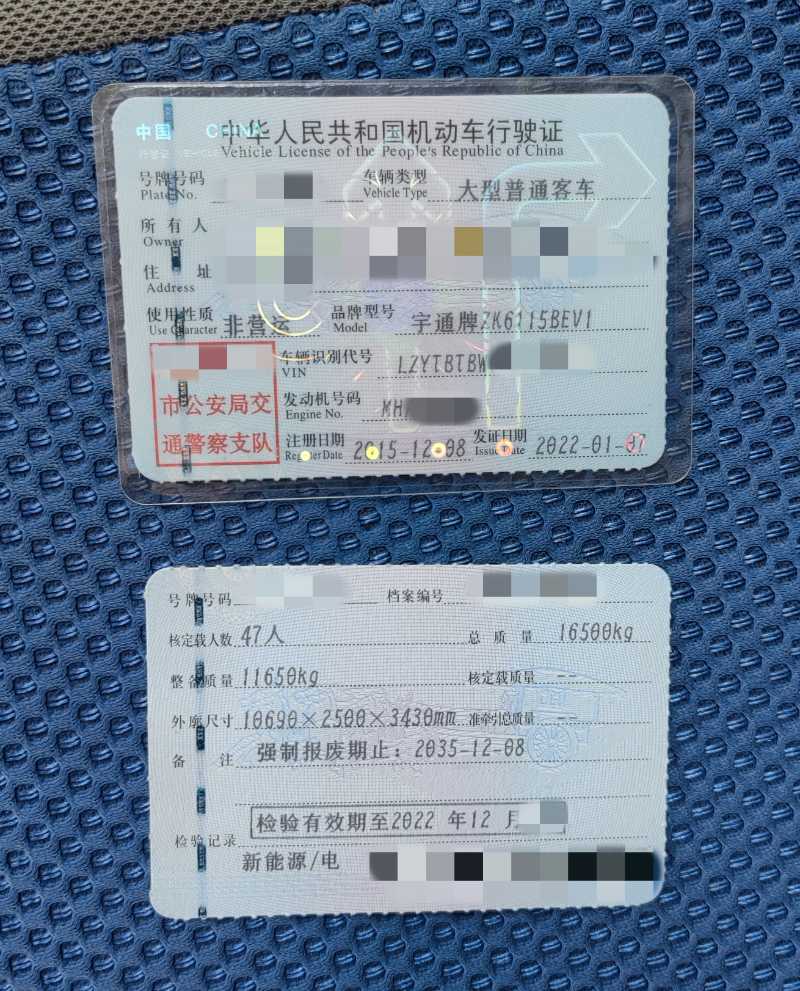 到货两台宇通新能源大巴2015年12月上牌宇通6115型47座大巴,天津力神161电,非营运性质,带电池加热,有中门,行李架,木地板,年审保险到2022年12月,还有一台同年的宁德时代电池宇通。