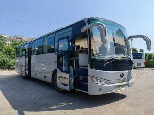 国五非营运54座12米宇通2018年1月上牌宇通6125型客车,54座,有中门,玉柴330国五机头,有缓速器,通仓,前碟后鼓,表显15万公里,地板干净整洁,可调座椅,轮胎都很新,无需投资即可赚钱了,感兴趣来电