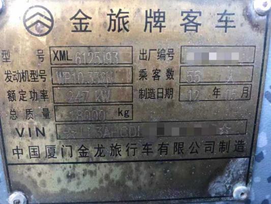 | 客车品牌 | 金旅客车 | 上牌时间 | 2012-05-18 |