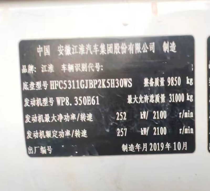 | 客车品牌 | 江淮客车 | 上牌时间 | 2020-11-18 |