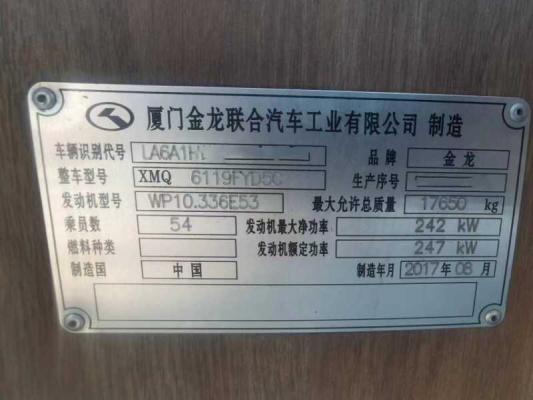 | 客车品牌 | 金龙客车 | 上牌时间 | 2017-08-22 |