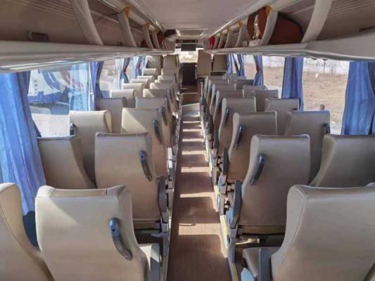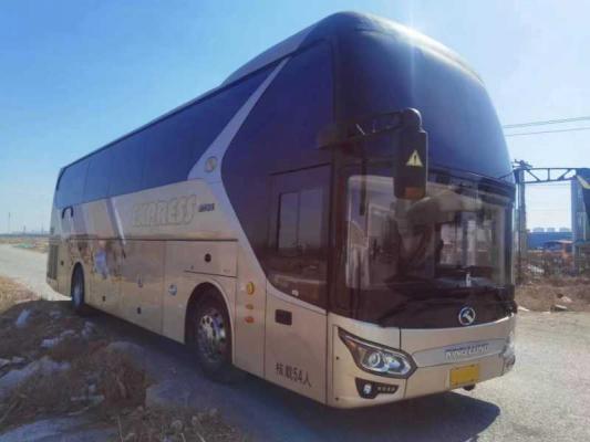 仅此一台抢手货54座国五旅游车2017年8月上牌金龙6119型一层半客车,后开门超大行李舱,气囊车,WP10潍柴336机头,一手旅游车,司机卧铺,木纹地板,底盘升降,点歌机,车载冰箱,上移底箱,公里数少,双档齐全,