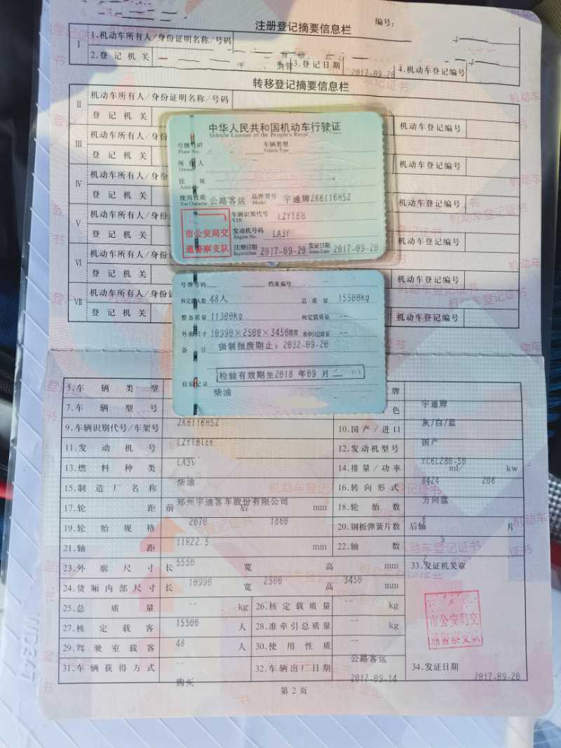 | 客车品牌 | 宇通客车 | 上牌时间 | 2017-09-14 |