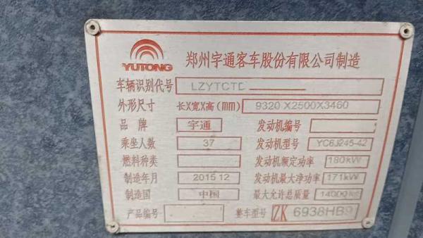 | 客车品牌 | 宇通客车 | 上牌时间 | 2015-12-29 |