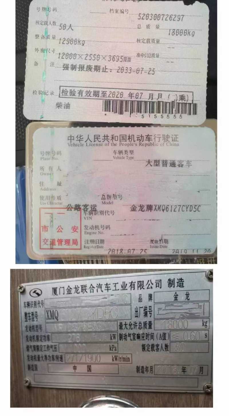 | 客车品牌 | 金龙客车 | 上牌时间 | 2018-07-25 |