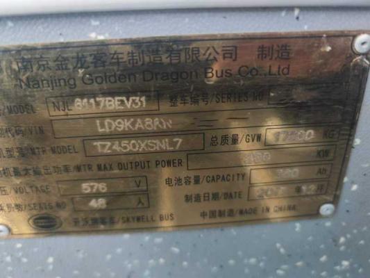 | 客车品牌 | 金龙客车 | 上牌时间 | 2017-12-15 |