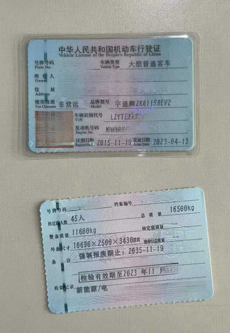 | 客车品牌 | 宇通客车 | 上牌时间 | 2015-11-19 |
