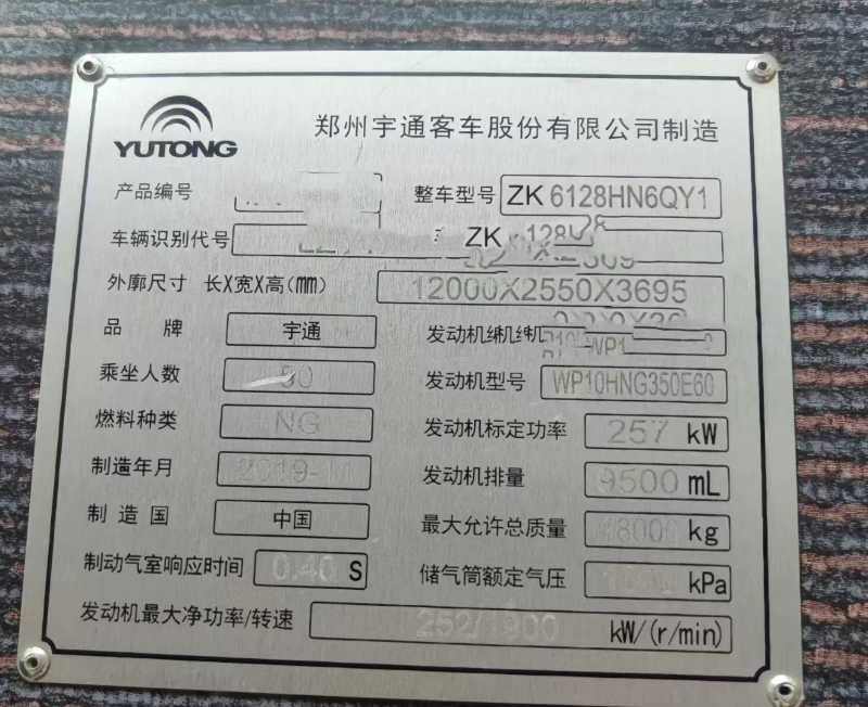 | 客车品牌 | 宇通客车 | 上牌时间 | 2019-12-12 |