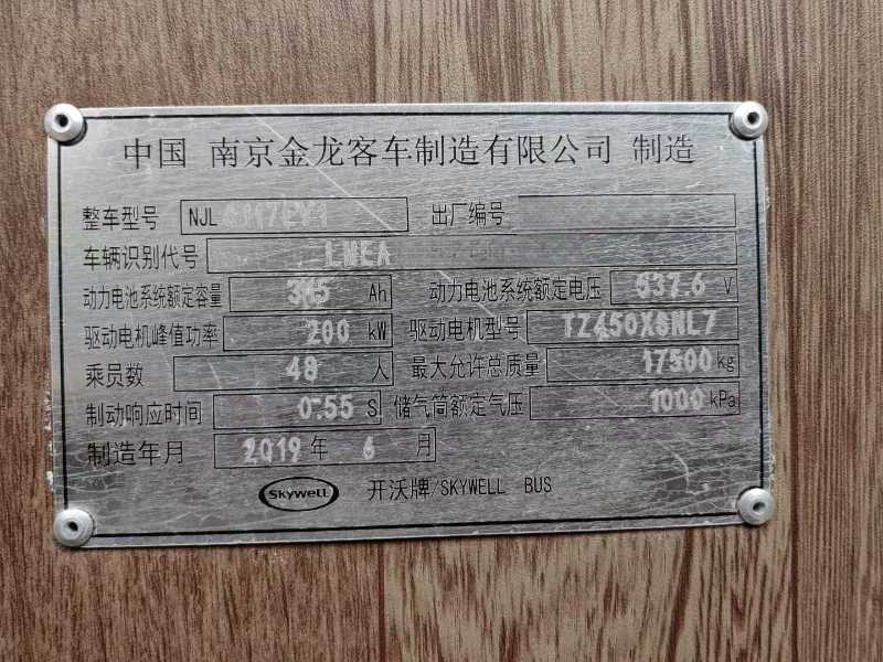 | 客车品牌 | 南京金龙 | 上牌时间 | 2019-06-21 |