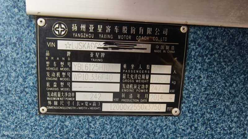 | 客车品牌 | 亚星客车 | 上牌时间 | 2014-09-15 |