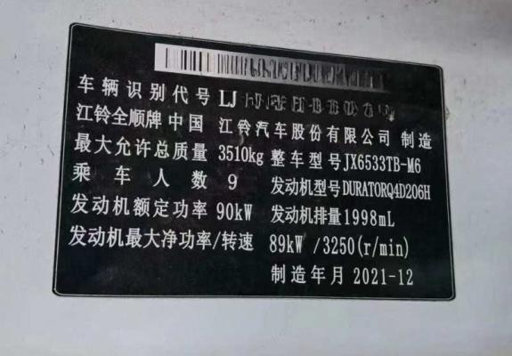 | 客车品牌 | 江铃全顺 | 上牌时间 | 2022-09-22 |