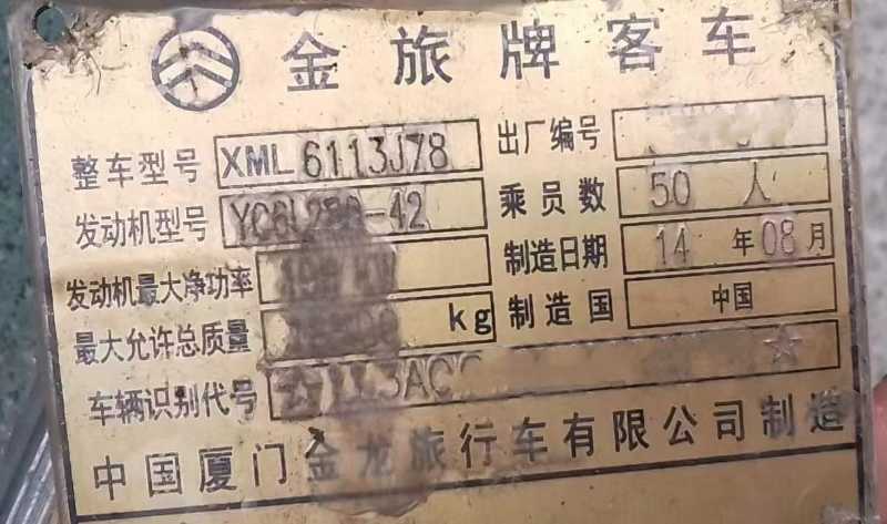 | 客车品牌 | 金旅客车 | 上牌时间 | 2014-09-16 |