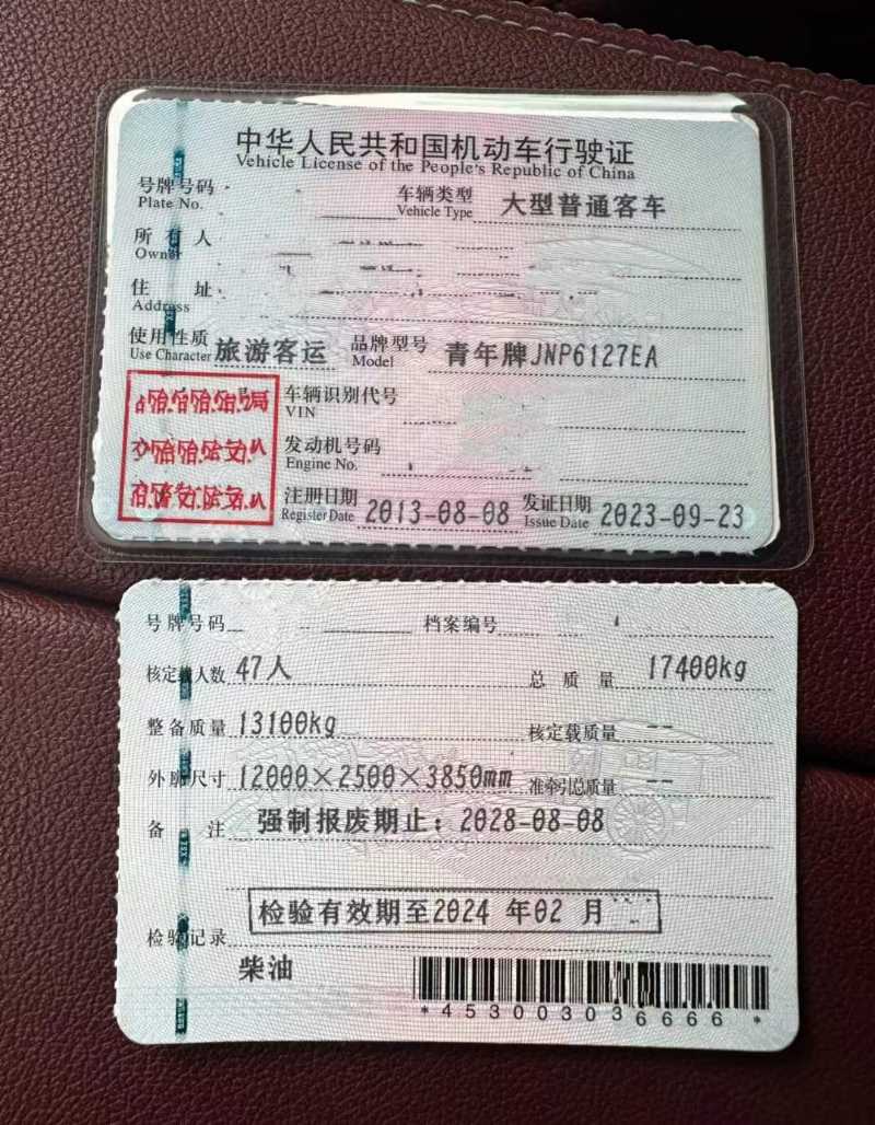 | 客车品牌 | 青年客车 | 上牌时间 | 2013-08-21 |