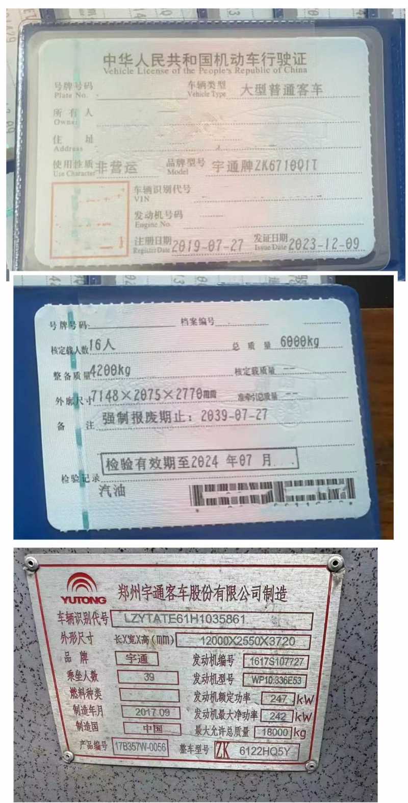 | 客车品牌 | 宇通客车 | 上牌时间 | 2019-07-16 |