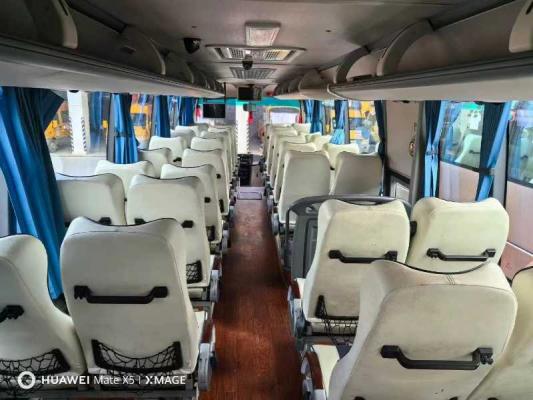性价比极高国五50座一手旅游客车18 年 2 月上户厦门金旅 6122J15Y,50 座、国 5、玉柴 330-50,气囊悬挂、前碟后鼓、法士特变速箱、缓速器、暖风、空调、双开门、商务真皮座椅、电视、倒车影像、硬盘播放器、多功能方向盘、定速巡航、木纹地板--