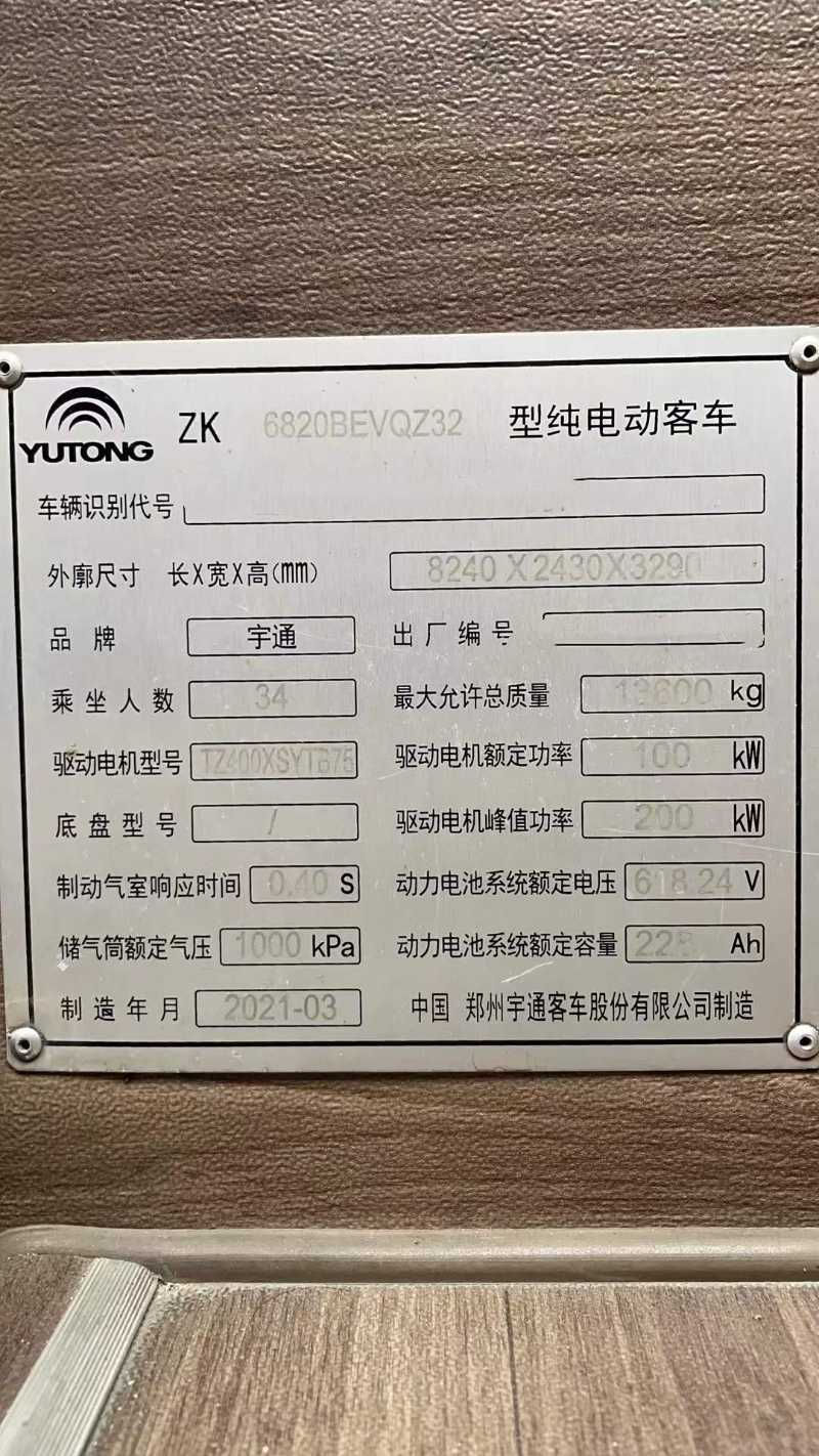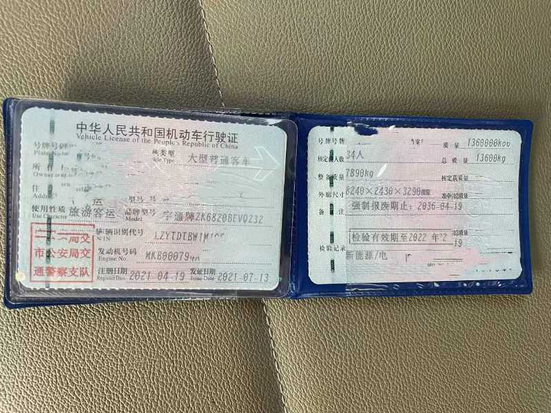 2021年宇通6820型34座电车,宁德时代140度,旅游客运,气囊车,有公告和营运档,大质保8年,