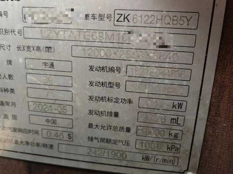 | 客车品牌 | 宇通客车 | 上牌时间 | 2021-06-24 |