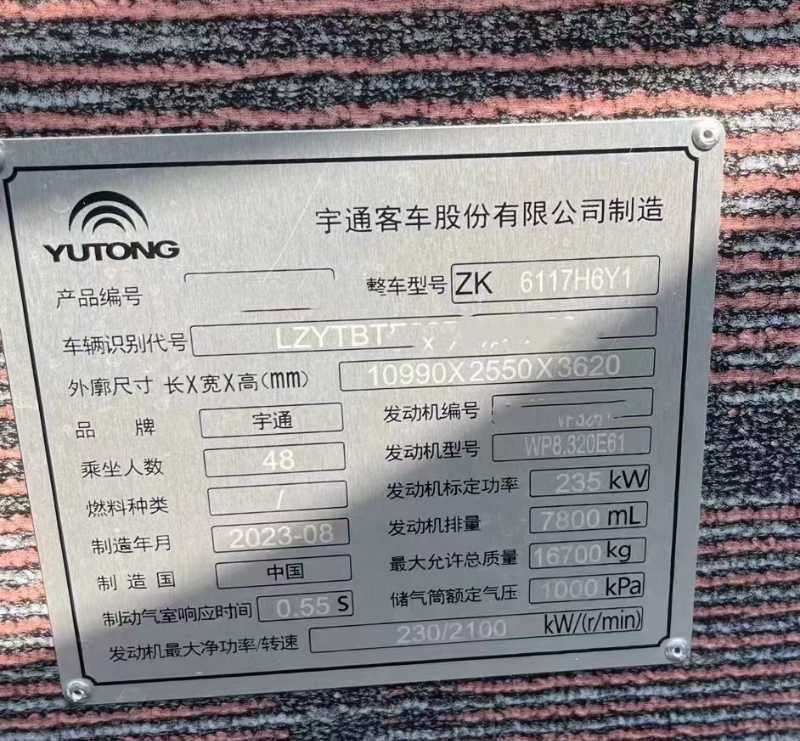 | 客车品牌 | 宇通客车 | 上牌时间 | 2023-09-13 |