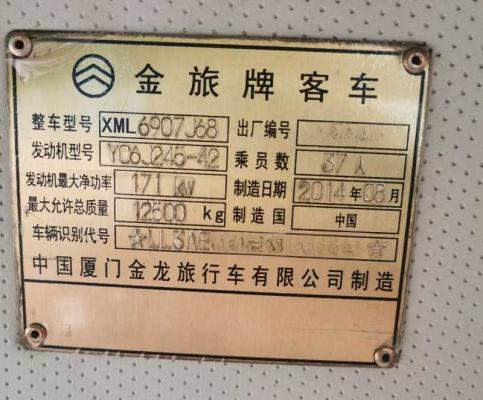 | 客车品牌 | 金旅客车 | 上牌时间 | 2014-09-24 |